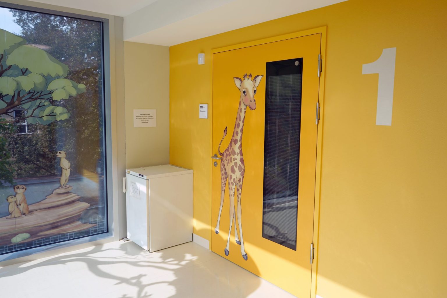 Für die Herstellung und Anbringung der Gestaltungselemente arbeiten wir eng mit zuverlässigen externen Dienstleister:innen zusammen, die die entsprechenden Anforderungen von Kliniken und Arztpraxen kennen. Zusätzlich begleiten wir die Installation der Designelemente vor Ort persönlich.
