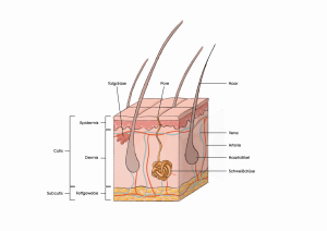 Schweißdrüsen – sorgen dafür, dass der Körper schwitzt und die Haut kühlt